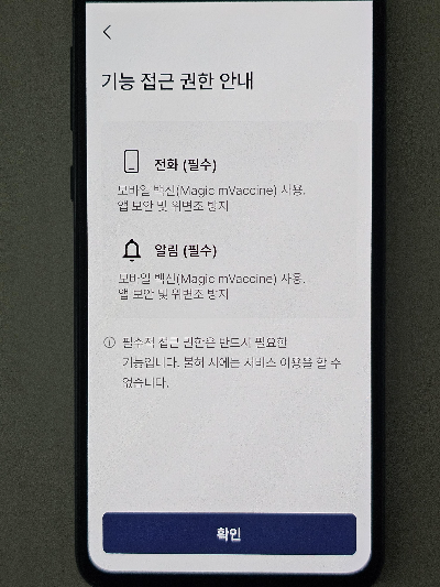 3. 완벽한 개인정보 보호 등 다음 3번을 누르고, 기능 접근 권한 안내 확인, 정보 수집 약관에 동의 확인합니다.