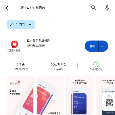 1. 구글플레이나 앱스토어에서 모바일 건강보험증을 설치합니다.