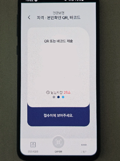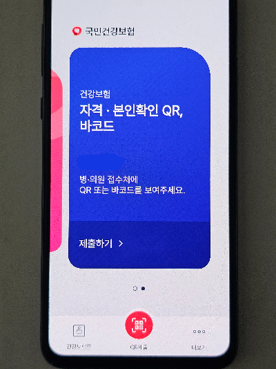 7. 모바일 건강보험증 사용할 때는 제출하기 또는 QR제출 버튼을 눌러 접수처에 보여줍니다.