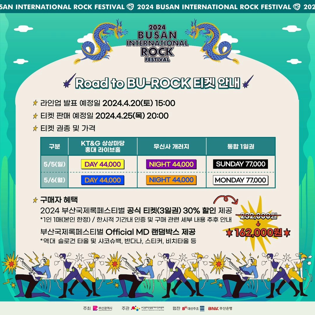 - 자세항 사항은 2024부산국제록페스티벌 SNS를 참고하시길 바랍니다.