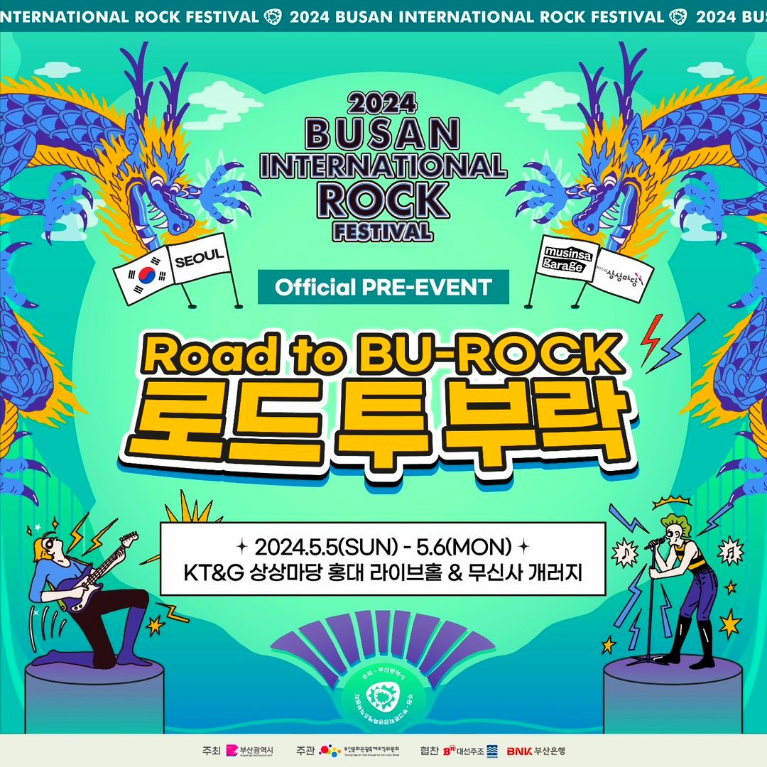 10월 부산에서 개최될 2024 부산국제록페스티벌의 사전행사인 로드 투 부락(Road to BU-ROCK)은 아티스트의 공연기회를 다양화하고 관람객들이 더욱 빠르게 부락을 만나볼 수 있도록 기획된 신규 프로그램이라고 합니다. Road to BU-ROCK은 앞으로 전국 각지에서 다양한 아티스트를 소개할 예정이니 많은 관심을 바랐습니다. Road to BU-ROCK의 첫 여정은 2024년 5월 5일 일요일부터 2024년 5월 6일 월요일 2일간 KT&G상상마당 홍대 라이브홀과 무신사 개러지에서 시작된다고 합니다.