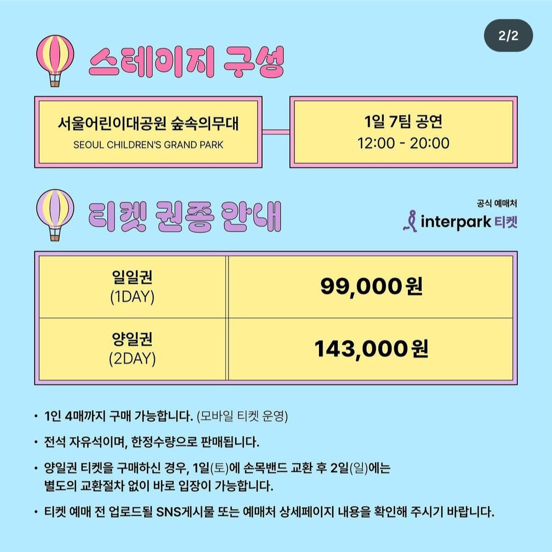 - 티켓 가격: 일일권 99,000원 양일권 143,000원